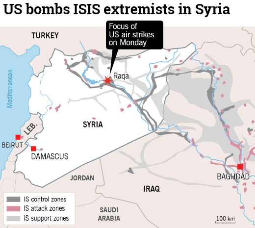 叙利亚当地时间23日凌晨,美军对叙利亚境内多个“伊斯兰国”目标发动空袭,并得到多个海湾阿拉伯国家支持。
