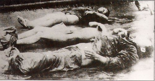 被日军残害的百姓尸体 日军除残酷屠杀无辜外,还肆意强奸、轮奸中国妇女。在占领后的一个月中,南京市内就发生2万起左右的强奸事件,连八、九岁的幼女和70多岁的老妪都不能幸免。许多妇女在惨遭蹂躏后又惨遭杀害。