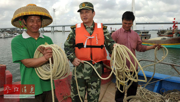 2014年2月24日,海南文昌公安边防支队支队长韦一新在清澜港向渔民宣讲相关政策法规。我国在海南文昌建设了全国第四个航天发射基地,预计2014年底或2015年初实现卫星首发。文昌公安边防支队所辖海域是卫星发射基地运输物资的重要海上通道,该支队提前向辖区渔民宣讲政策法规,做好航天城建设期间的海上安全保卫工作,为卫星首发成功提供保障。新华社记者 赵颖全 摄