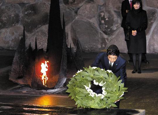 资料图:安倍在犹太人大屠杀纪念馆献花