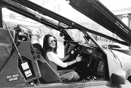 李蒨蓉在网上晒出坐在“阿帕奇”座舱的照片。