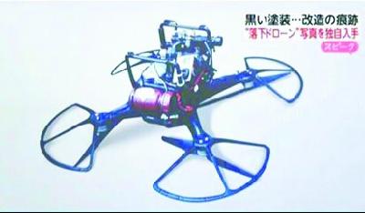 据共同社23日报道,22日在日本首相官邸房顶上发现的属于市场上销售的“Phantom”型无人机,但经过大幅改造,原本白色的机身也被涂成了黑色(如图)。日本警方称,无人机被检测出微量辐射,可能含有福岛核事故释放的铯,“有人故意控制无人机飞入官邸”。