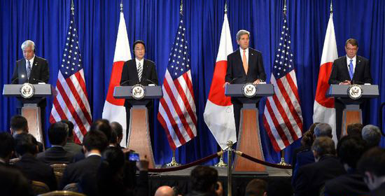 4月27日,美国和日本在纽约联合发表新版《美日防卫合作指针》。