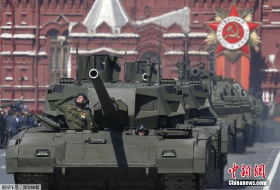 当地时间5月7日,俄罗斯军队士兵在红场准备胜利日阅兵总彩排。5月9日,莫斯科红场将举行庆祝卫国战争胜利70周年阅兵仪式。图为俄罗斯T-14阿玛塔主战坦克亮相。