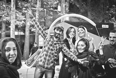 7月14日,伊朗民众在德黑兰街头庆祝伊核全面协议达成。
