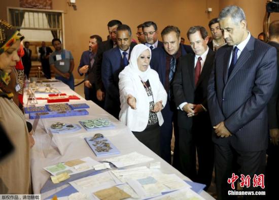 资料图:当地时间2015年7月15日,伊拉克巴格达,伊拉克国家博物馆举行走私文物归还仪式,伊拉克旅游部长Adel Shirshab与美国驻伊大使Stuart Jones出席。据悉,美国在叙利亚对“伊斯兰国”展开突袭时截获了这批走私文物。