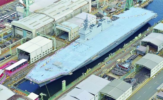 日本海上幕僚监部27日公布,“加贺”号是海上自卫队最大的舰艇,全长248米,宽38米,满载排水量达2.6万吨,可搭乘470人,配备9架反潜直升机,未来也能起降自卫队从美国采购的“鱼鹰”倾斜旋转翼飞机。据称,“加贺”号的命名下水仪式非常隆重,彩带环绕着巨大的船体,船体入水后还有彩球、鸣炮祝贺。“雅虎日本”网站介绍称,“加贺”号是今年3月服役的“出云”号直升机航母的姊妹舰。尽管日本官方掩耳盗铃地宣称该舰为“护卫舰”,但按照国际标准,它应该被归为直升机航母。如果日本为其配备美制F-35B垂直起降战机,它更可摇身一变成为轻型航母。防卫省透露,“加贺”号下水后还将配备必要的装备,预定在2017年正式服役。