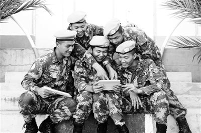闲暇之时,平板电脑、智能手机是我赴黎巴嫩维和官兵学习教育、休闲娱乐的重要工具。叶洋萍摄