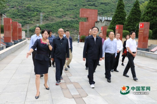 2016年9月8日 ,中共中央党史研究室主任曲青山(前排左三)在四川泸定红军飞夺泸定桥纪念馆参观考察。