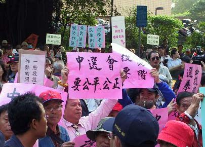 台湾民众到“中选会”所在办公大楼下表达诉求,希望选举能公平公正进行。