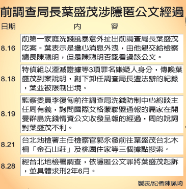 台当局前“调查局长”叶盛茂涉隐匿公文经过。(联合报图)