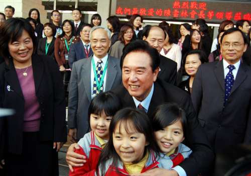 11月27日,海协会会长陈云林来到东莞,调研当前台资企业生产经营情况。陈云林表示,相关部门对台商的呼声非常重视,呼吁台商树立信心,积极应对国际金融危机带来的困难。图为陈云林在东莞参观台商子弟小学。(中新网)