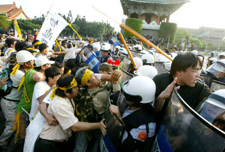 民进党人士在陈云林访台期间“围城游行”,与警察爆发多次冲突。