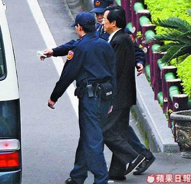台北地方法院昨天提讯羁押在台北看守所的陈水扁。(图片来源:台湾《苹果日报》)