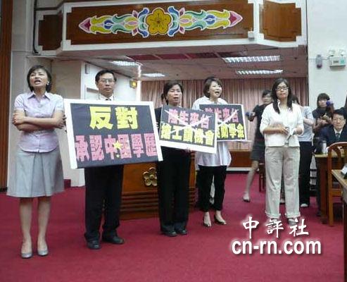 图:民进党昨天甲级动员,阻挡承认大陆学历的草案通过。(图片来源:香港中评社)
