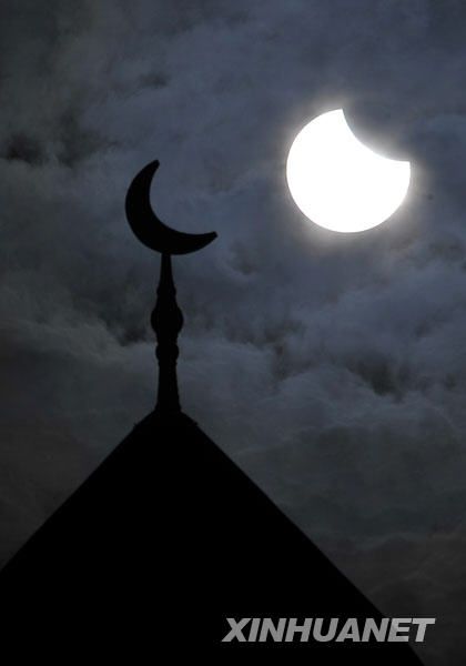 7月22日8时33分,在银川市上空拍摄的日食。当日,我国境内将出现日全食景观。(图片来源:新华社)