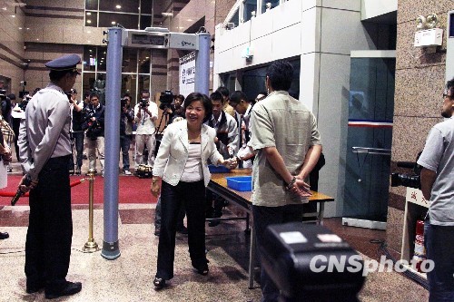 10月26日晚,中国国民党中央在台北召开临时中常会,讨论中常委全面补选事宜。图为中常委赶赴国民党中央党部开会。党主席马英九在会中致辞表示,国民党改革党内选举风气,不光为了党的前途,更是为了台湾前途。国民党日前举行新一届中常委选举,传出部分参选者送礼,多位中常委纷纷请辞,冀以撇清立场,也希望推动党内改革。(图片来源:中新社)