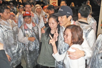 马英九25日晚冒雨与县长候选人吕国华在宜兰市扫街拜票,所到之处,民众疯狂、兴奋合影。马英九宣誓必胜决心:“一定要让吕国华当选县长!”(图片来源:台湾联合报)