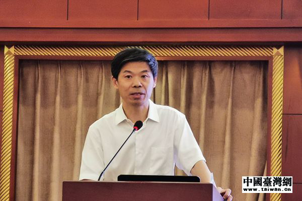 海峡两岸关系研究中心主任仇开明在第二十八届海峡两岸关系学术研讨会上作主题发言。(中国台湾网 李杰 摄)