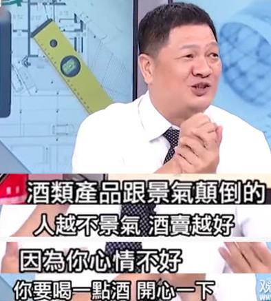 节目嘉宾表示,“越不景气,酒卖得越好,因为你心情不好,要喝一点酒开心一下”。