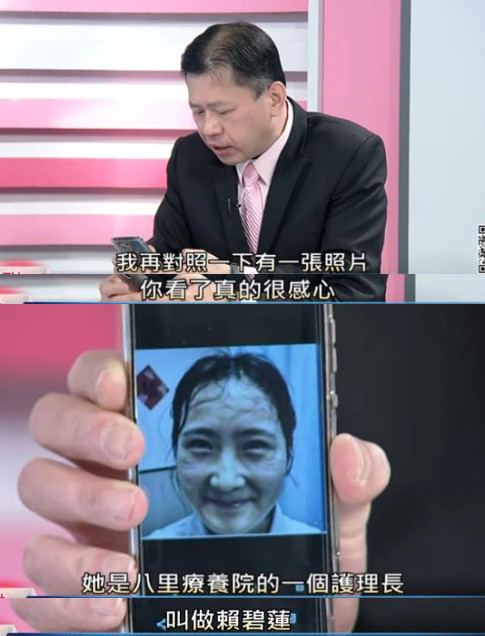 节目中,丁学伟表示,照片中的这位护士是八里(新北市)疗养院一名叫做赖碧莲的护理长,前不久曾参与第二批武汉台胞返台工作。