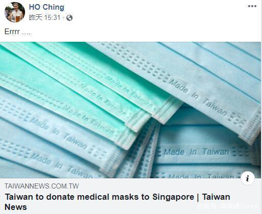 我们都知道,民进党当局宣布捐赠1000万个口罩给欧美地区后,又在日前表示将再捐赠100多万个口罩给所谓的“新南向”地区,新加坡也在捐赠范围之内。然而,新加坡总理夫人何晶11日在个人脸谱账号上转发台湾拟捐赠口罩的新闻时,评论了这样一个字“Errr…”(呃…)。此举被一些台湾网军视为“不领情”,何晶很快被群起而攻之。她脸谱账号的每一条贴文下面都被洗版,台湾网军使用了大量负面语言去攻击她,说她忘恩负义,不懂“感恩”;有的甚至上升到对她的人身攻击,或者攻击新加坡这个国家;还有人称,应该把口罩要回来送给美国,甚至要求何晶“向台湾道歉”。
