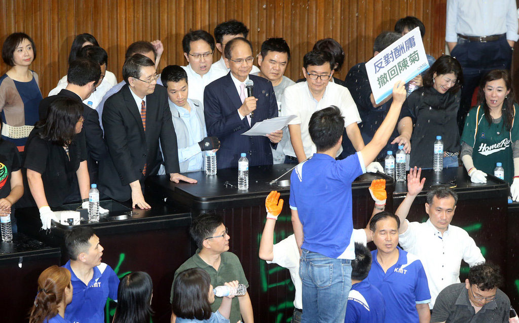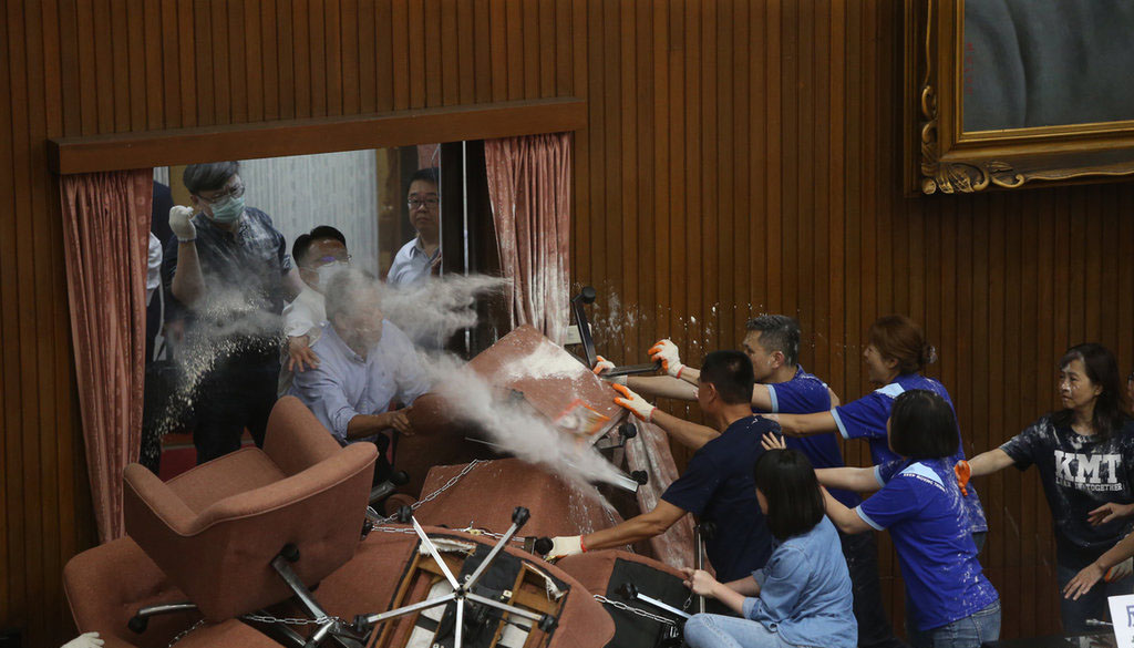 台立法机构蓝绿混战现场图(图片来源:台媒)