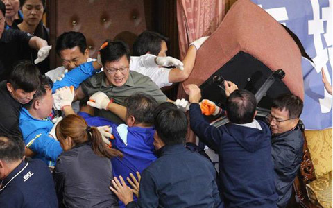 蓝绿民意代表在立法机构打作一团。(图片来源:网络)