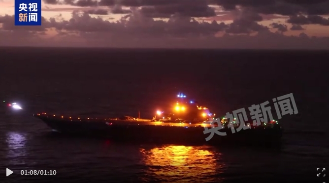 辽宁舰航母编队位台岛以东参加“联合利剑-2024B”演习。(图片为视频截图)