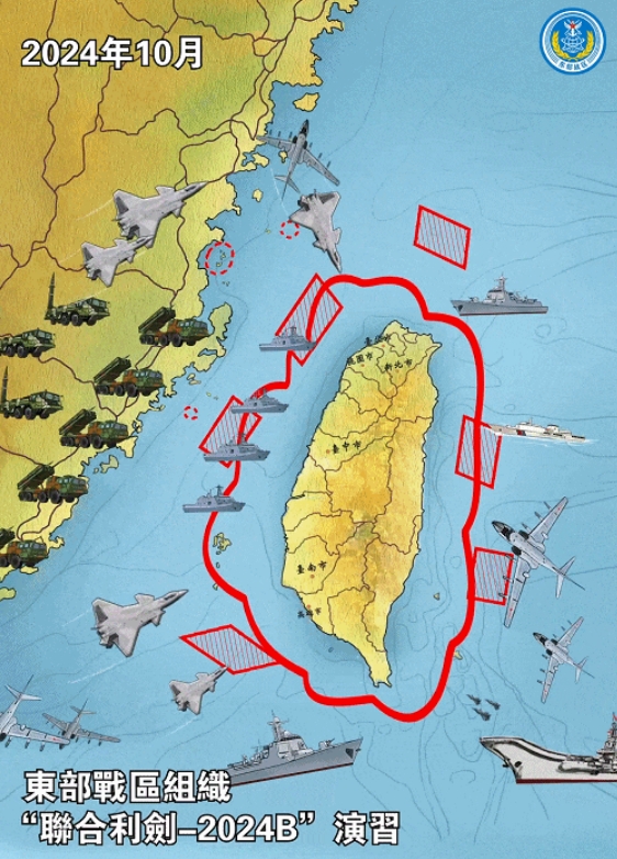 10月14日凌晨,解放军东部战区发布开展“联合利剑-2024B”演习公告。当许多人还处于睡梦之中,解放军陆军、海军、空军、火箭军等兵力,已经位台湾海峡、台岛北部、台岛南部、台岛以东等区位开始行动了。