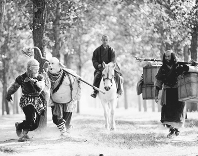 经典翻拍是一把双刃剑。一方面,经典起点高,有广泛的观众群;另一方面,观众对经典有心理预期,很多人反对经典翻拍,是担忧经典被糟蹋。徐克翻拍胡金铨版的电影《新龙门客栈》大获成功,证明了“小马过河”的道理,关键是要把握深浅。前些年改编西游故事的电影《大话西游》大受欢迎,也是这类作品中的新经典。可见只要内核对了,翻拍完全可以在形式上实现多样化。总体来说,翻拍有两种,一种是完全遵从原著,简单照搬;一种是原著基础上的创新改编,新《西游记》无疑是后者。具体而言,新《西游记》在人物外形设计、场景特效、台词对白等方面突破较大,尤其在特效制作上,尽管与好莱坞相比,难称完美,但较之老版已有质的飞跃,体现出了时代进步下经典翻拍的技术意义。