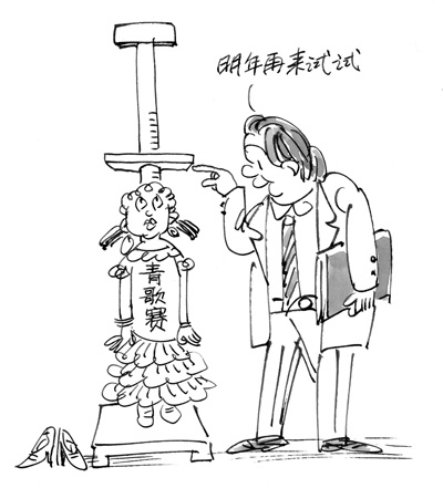 值得庆幸的是,青歌赛的舞台还在,宣布停办一年需要勇气,更需要反省、需要思考,但愿在停办的这段时间里,青歌赛低调沉潜,韬光养晦,博采众长,最终找到实现新飞跃的起跳点。
