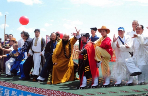 8月3日,各大门派掌门、代表、传人现身新疆特克斯县卡拉斯大草原,参加“天山武林大会”,让观众打开眼界。(8月3日 中国新闻网)