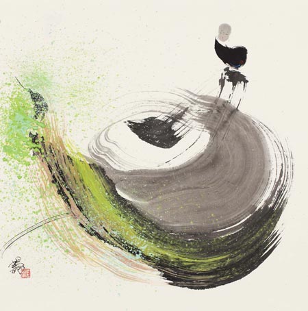 田旭桐任教清华大学美术学院多年,有着丰富的艺术创作背景。十几年来,禅,是田旭桐水墨画创作的唯一主题,也是他风格演进的主要标志。他的作品,以开放的心态打破了人们对水墨画形成的特定视觉经验。人们从中读出了画家的思想,也愿意从禅之意趣的视角去欣赏离形写神、墨注韵生的状态。把接近抽象的墨色作为主导构形的方式,用固定的图式形成视点,已不能简单地用传统文化积淀或创新去评注。很显然,这种一简超百繁的境界也非一般水墨画所能表现。东方与西方,传承与当代,巧妙化解冲突,洞察融合之处,田旭桐在艺术与哲理之间使复杂的水墨技法,演化成一种深邃而高雅的单纯,在观想的空境中体现了禅的意境。