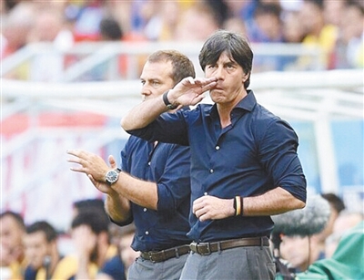 自从上任德国队主教练,勒夫在场边的小动作成为摄影记者的关注点。
