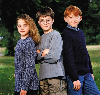 上周末上映的《霍比特人3》勾起影迷对于新千年的时光回忆。无独有偶,一组2000年《哈利·波特与魔法石》的剧组照片于近日曝光,照片中稚嫩的三位演员艾玛·沃森、丹尼尔·雷德克里夫、鲁伯特·格林特(从左至右)也引发网友“匆匆那年”的回忆和“岁月是把杀猪刀”的感慨……于十五年后遇见曾经的哈利,没有早一步,也没有晚一步,只能轻轻地问一句:哈,你波特啊。