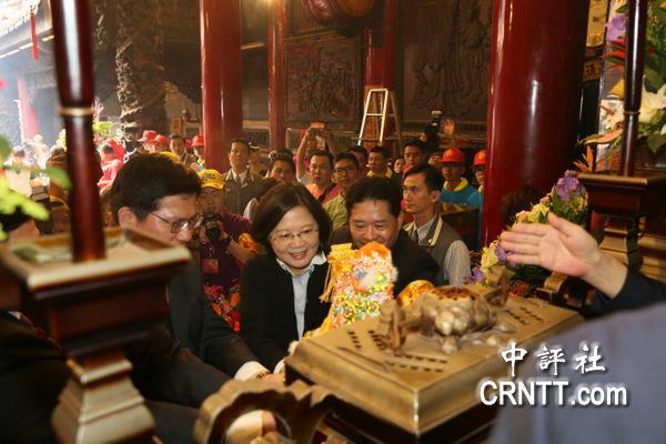蔡英文拜妈祖。(图片来源:香港中评社)