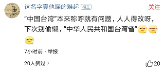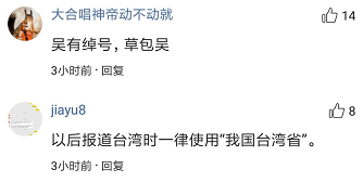 这些网友本着严肃的“自我反省”精神,表示“中国台湾”的说法确实不够严谨,建议下次统一改为“中华人民共和国台湾省”或“中国台湾省”,或直接称为“台湾省”。