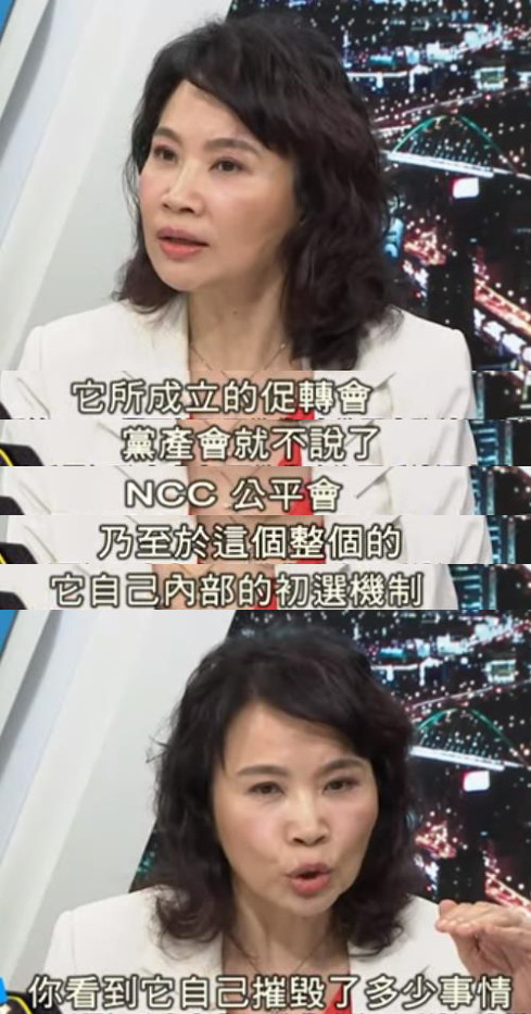 陈风馨进一步表示,在蔡英文执政的3年里,台湾的独立机关已经被祸害殆尽,除了专门针对国民党的“促转会”和“党产会”之外,“NCC”(台湾通讯传播委员会)、公平会等部门也全部换上民进党自己人,就连民进党内部的初选机制也一样被“没收”。