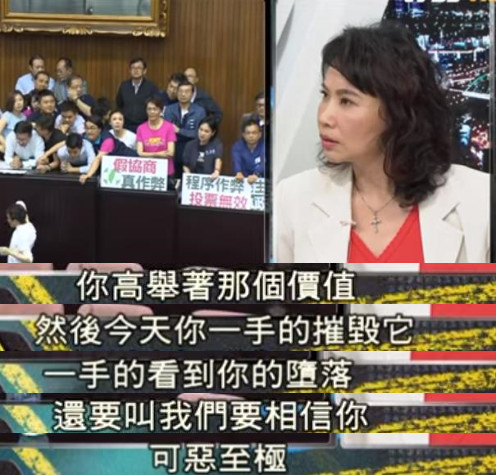 陈风馨表示,民进党自己高喊的民主价值被它一手摧毁。它自己摧毁了整个台湾的信任基础之后,接着说我就算用一个我自己的同志来当“中选会主委”你们也要相信,这怎么可能?