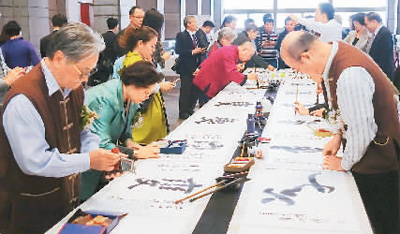 两岸书法家挥笔共书年度汉字。(图片来源:人民日报海外版)