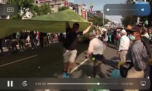 这两场游行中,支持韩国瑜一方的口号是“下架蔡英文、下架民进党”;罢韩一方的游行队伍,则由写着“光复高雄、保卫台湾”八个大字的超长绿色大布条做前导,很是气派。
