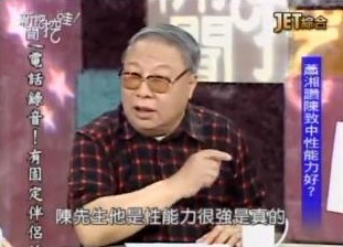 据环球网报道,陈水扁之子陈致中身陷召妓门至今尚未落幕,不过根据台湾壹周刊报道的“40分钟召妓论”,反倒成为不少台湾民众茶余饭后的八卦。知名面相专家萧湘居士在谈话节目中表示,陈致中下巴又肥又长,所以性能力好。另外,对于年底选举,居士也断定他会“当选”。