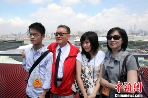 8月27日,台湾知名学者李敖携家人参观上海世博会。图为李敖携家人在中国馆顶楼平台合影留念。中新社记者 汤彦俊 摄