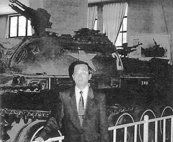资料图:陈水扁在北京军博印有“八一”字样的解放军坦克前留影。