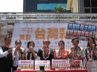 据台湾“今日新闻网”报道,台湾最高民意机构负责人王金平7日在云林县参加推销大蒜活动时,不仅围上蒜头草裙,还大吃蒜头,建议民众多吃蒜头以带动塑化剂排出。 据报道,王金平7日上午参加“台湾蒜尚介赞”活动时表示,蒜头很营养,杀菌力也很强,可加强新陈代谢,“多吃蒜头可以带动塑化剂排出体外”。 国民党籍民意代表张嘉郡更建议台农业主管部门加强辅导研发蒜头的加工制品,例如休闲食品、保健食品、饲料添加物,以及有机农业资材,并能建立完整的产业链。