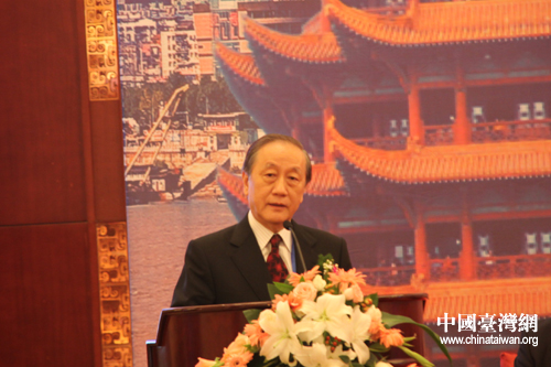 新党主席郁慕明在第八届“湖北·武汉台湾周”开幕式上致辞时表示,两岸关系发展到今天很不容易,期许两岸关系“未来的大道是平坦的、健康的、正确的、有益的”。(中国台湾网 杨丽 摄)