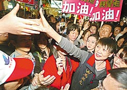 向来低调的马英九夫人周美青被蓝营视为助选要角,图为2008年她南下高雄瑞丰夜市帮马拉票(图片来源:台湾媒体)