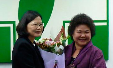 民进党代理主席陈菊送花给离任的蔡英文。 图片来源:香港“中评社”