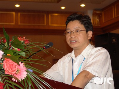 全国台联联络部部长、前全国台联研究室副主任、全国台湾研究会理事杨毅周教授在第十四届海峡两岸关系学术研讨会上发言。(图片来源:中国网)